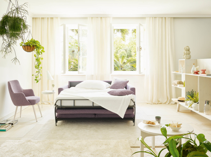 Mehr Bett hat es in einem Sofa noch nie gegeben! Treffender kann man das neue Schlafsofa Onda nicht beschreiben. Onda punktet nicht nur durch den hohen Schlafkomfort, der durch die extra dicke, ca. 18 cm hohe Matratze zustande kommt, sondern auch durch die angenehme Einstiegshöhe. Damit ist Onda fast mit einem Boxspringbett vergleichbar. Auch die neuartige Goodside®-Belattung Bizone, die besonders für große Liegebreiten geeignet ist, macht Onda zu einem besonderen Schlafsofa.